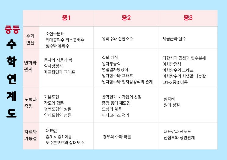 중등 수학교과서 학년별 연계도 입니다. 학습에 유용한 자료가 될 듯 합니다. 수학이 달라지는 시간 정상수학 문의 02 2612 6636 010 8647 5065 <img src="https://blogthumb.pstatic.net/MjAyNjAxMTRfMjc5/MDAxNzY4MzkyOTAzNDc2.awRR1wO-8t8gu_BbfezuljW1nm8JPo8hPNCa_Rorb5Ag.WErhB8cXox6ZLVyi3YrjY7Gk-kq9xjsUtWVUwdv9foUg.JPEG/1.jpg?type=s3" />
