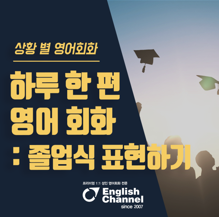 안녕하세요! 잉글리쉬채널 구로센터입니다. 오늘은 학교, 연수 과정, 교육 프로그램 등을 마무리할 때 자주 등장하는 상황, 졸업식 영어로 어떻게 표현하는지 알아보겠습니다. 졸업식은 축하 인사부터 소감, 앞으로의 계획까지 영어로 말할 일이 은근히 많은 주제라 문장으로 익혀두면 좋아요. 1. 졸업식 영어로 기본 표현 알아보기 졸업식은 영어로 graduation ceremony 또는 간단히 graduation이라고 합니다. 졸업 자체를 말할 때와 행사를 말할 때 표현이 조금 달라요. My graduation ceremony is next week. → 제 졸업식은 다음 주예요. I’m graduating this year. → 저는 올해 졸업해요. She attended her friend’s graduation. → 그녀....... <img src="https://blogthumb.pstatic.net/MjAyNjAxMjFfMTA2/MDAxNzY4OTYyMjY3MDc2.t06cscJzqnMFqFsZx0SGgqgpQ8TgyFKefRNbKC0i6Tkg.H-GV3j7eF_lBvlundX2cpuH_pwM_eN5O31gfKdGQJygg.PNG/%C1%B9%BE%F7%BD%C4.png?type=s3" />