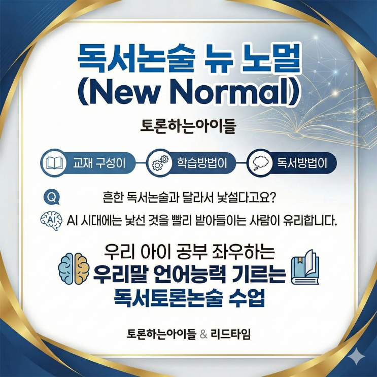 26년, 독서논술 교육 판이 바뀐다. AI·AGI·ASI 시대 생존 키워드 '창의융합통섭형 인재’ 인재 양성 힘은 독서·토론·글쓰기에서 길러진다. 독서논술 토론논술 독서토론 디베이트논술 업력 30년 독서논술 수준과 완성도가 높은 [토론하는아이들 & 리드타임]으로 독서논술 교육의 판을 바꿉니다. <2026년 주목해야 할 교육 이슈> 26년 독서논술 교육의 뉴 노멀(New Normal) 토론하는아이들이 새로운 길을 제시합니다. 독서논술 탄탄한 시스템과 커리큘럼으로 해야 독서논술 수준과 완성도를 높일 수 있어요. 경험 중심 독서와 독후활동, 글쓰기로 독서효과를 톡톡히 보는 <리드타임> 리드타임 프로그램 소개 > 공지사항 | ....... <img src="https://blogthumb.pstatic.net/MjAyNjAxMjNfMjU0/MDAxNzY5MTUxMDczNDcy.gRs-wTbbSxGM0SrnSNicD9PeV47PkUYXtYqklcTb-Xkg.sMMY1eShY4k4G1z2UrjRXAgOG804YF-cnxNp5LAksdwg.PNG/000_%285%29.png?type=s3" />