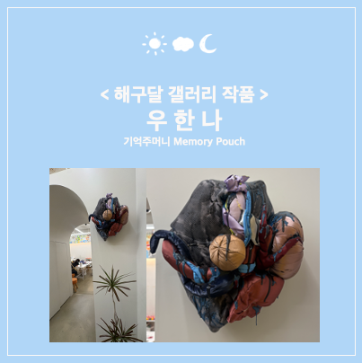 안녕하세요, 해구달 미술입니다. 해구달의 작은 갤러리에는 아이들의 시선을 천천히 바꾸어주는 작품들이 숨 쉬고 있습니다. 오늘 소개해드릴 작가는 감각과 기억, 그리고 몸의 경계를 다루는 작가, 우한나입니다. 이번 글은 해구달이 직접 소장하고 있는 작품 《기억주머니 Memory Pouch》를 중심으로, 2022년부터 이어진 특별한 인연, 지난 3월 14일 작가의 작업실 방문기, 그리고 곧 2026 아트바젤 홍콩에서 선보일 놀라운 신작들을 함께 소개해 보려 합니다. 2022년, 운명적 첫 만남 - 송은 아트센터 해구달쌤이 우한나 작가의 작품을 처음 마주한 것은 2022년 송은 아트센터에서였습니다. 17명의 작가들이 참여한 아트큐브 그룹전에서....... <img src="https://blogthumb.pstatic.net/MjAyNjAzMjNfODkg/MDAxNzc0MjY5ODkzNDc1.9R6vkrbgv6WGpnZgybMsU5WgMkVIGGh_BLMFsZhyjiEg.zp9DQIfCtZKAzqFxBNw5DM0dux5Me8tOa2g_Hy1nzMQg.PNG/%BF%EC%C7%D1%B3%AA%C0%DB%B0%A1.png?type=s3" />