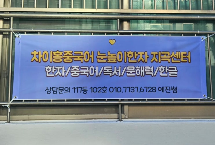 [포항한자 포항중국어] 현수막 걸었어요! 그린빌라1차 117동 102호 한자/중국어/독서/문해력/한글 지곡초 근처 제철유치원 바로 앞 도보1분컷