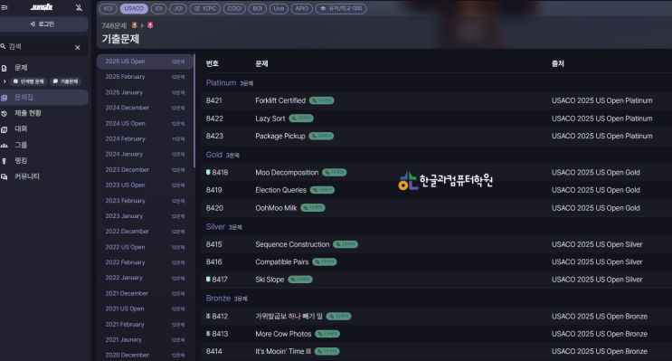 USACO(USA Computing Olympiad)는 미국 정보올림피아드입니다. 미국 학생뿐만 아니라 전 세계 학생들에게 응시 기회가 주어집니다. (US Open 제외) 미국 유학을 준비하는 학생들은 물론, 프로그래밍 경시대회를 준비하는 모든 학생들에게 유용하니 잘 살펴보시고 참가해보세요! USACO는 시즌제로 운영되며, 이번 시즌부터는 여러가지 변화가 생겼습니다. ◆ 2025–2026 시즌부터 달라지는 점은? 구조적 변경 1차 대회 개최 시기 : 12월 → 1월로 변경 US Open은 감독 하에 치르는 오프라인 초청 대회로 변경 온라인 대회에서의 성과를 바탕으로 오프라인 결승 초청 (미국 학생 대상) 공식 인증 점수(Certified Score) 제도 도입 Gold와 Platinum ....... <img src="https://blogthumb.pstatic.net/MjAyNTEyMThfMzMg/MDAxNzY2MDQ4OTAwOTA5.QxdR8wrDtp2eDwY_g3hVlZHuv6j5Zck_27HFpkGmkUUg.yIalVW9URlh_1zpwC3y247tCN3CQZEMRTg8L75yZscsg.PNG/image.png?type=s3" />