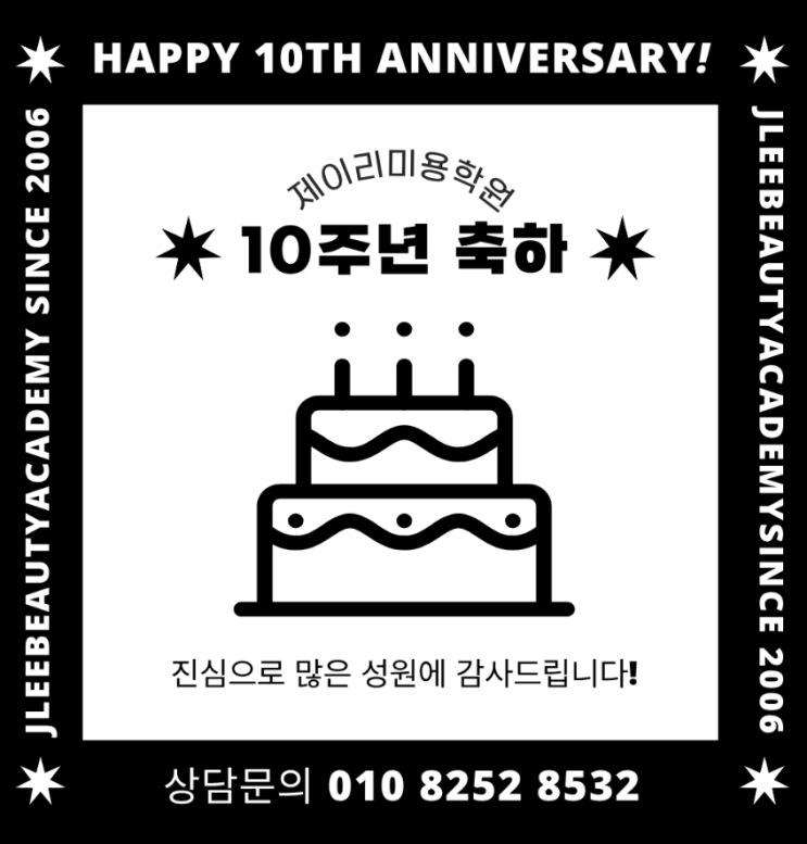 올해는 포항제이리미용학원이10주년을 맞이하였습니다.