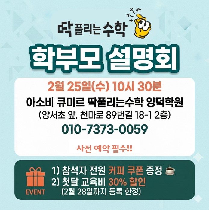 [학부모 설명회] 딱풀리는수학 양덕양서점!우리 아이 수학 자신감, 여기서 시작됩니다!