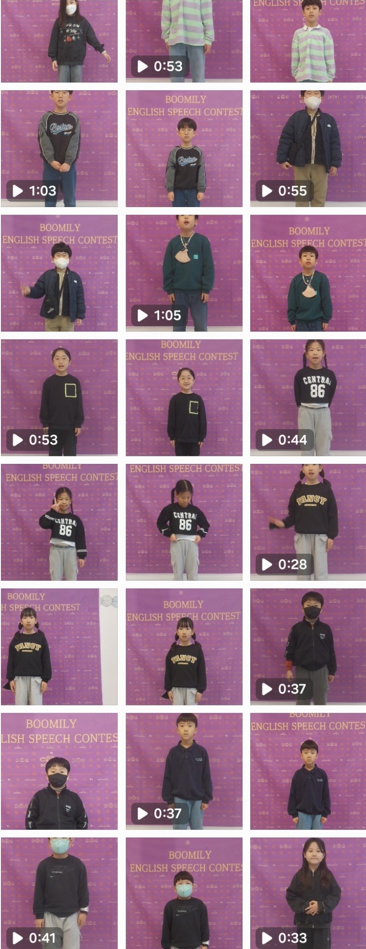 제 3회 부밀리원서말하기대회 한주동안 원서 정하고 3주동안 준비하고 마지막 주는 전체 연습과 리허설로 꽉 찬 한 달을 보냈습니다. 열심히 연습하고 실력발휘해준 부밀리모든 아이들을 응원합니다!!! <img src="https://blogthumb.pstatic.net/MjAyNTEyMTBfMjU3/MDAxNzY1MzY5MjMwMDc0.b3SeaU3ayeuye2Oy8NXn4rK41m0dLmqhbFUNkh_opw8g.xprIs-8mM9K0mE9TKrIg5yQ8WBdnNxYPqwWnwEb6E5Ig.JPEG/Screenshot%A3%DF20251210%A3%DF211745%A3%DFGallery.jpg?type=s3" />
