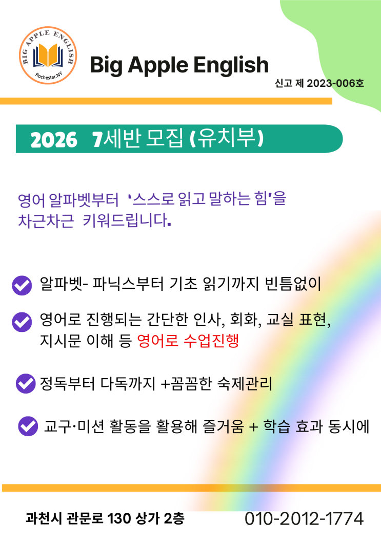 2026년 7세 유치부 대모집 (빅애플 잉글리쉬)
