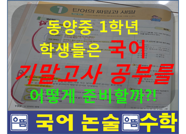 안녕하세요~! 동작구 상도역, 노들역 상도동, 본동에 위치한 으뜸 국어 논술 / 으뜸 수학 동작구 대표 국어 학원 '으뜸 국어'입니다. 오늘은 으뜸 국어의 전문 관리 학교 중 하나인 동양중 1학년 학생들이 기말고사를 어떻게 준비했는지 소개하려고 합니다. 이번 동양중 1학년 기말고사 범위는 국어 문법 파트인 3-(1) 단어의 짜임과 새말 3-(2) 어휘의 양상과 쓰임 비문학 파트인 4-(1) 매체와 의사소통 4-(2) 존중하며 말하기였습니다. 특히 이번 시험 범위는 가장 어렵고 중요한 문법과 비문학으로, 향후 고등부에서 배우게 될 **<언어와 매체>**와도 연계될 정도로 매우 중요합니다. 3단원: 문법 파트 문법 파트는 학생....... <img src="https://blogthumb.pstatic.net/MjAyNTEyMTlfOTcg/MDAxNzY2MTIxNjY2NTE0.hdDju_tQkUCahdHsuqnFz9XmSBcFN7Ae78x7PGihlFog.S6KSmyvdIyl7q1O9RMy2k7idnJW6Tq4wcg_EEbK2Tzkg.PNG/%B1%D7%B8%B21.png?type=s3" />