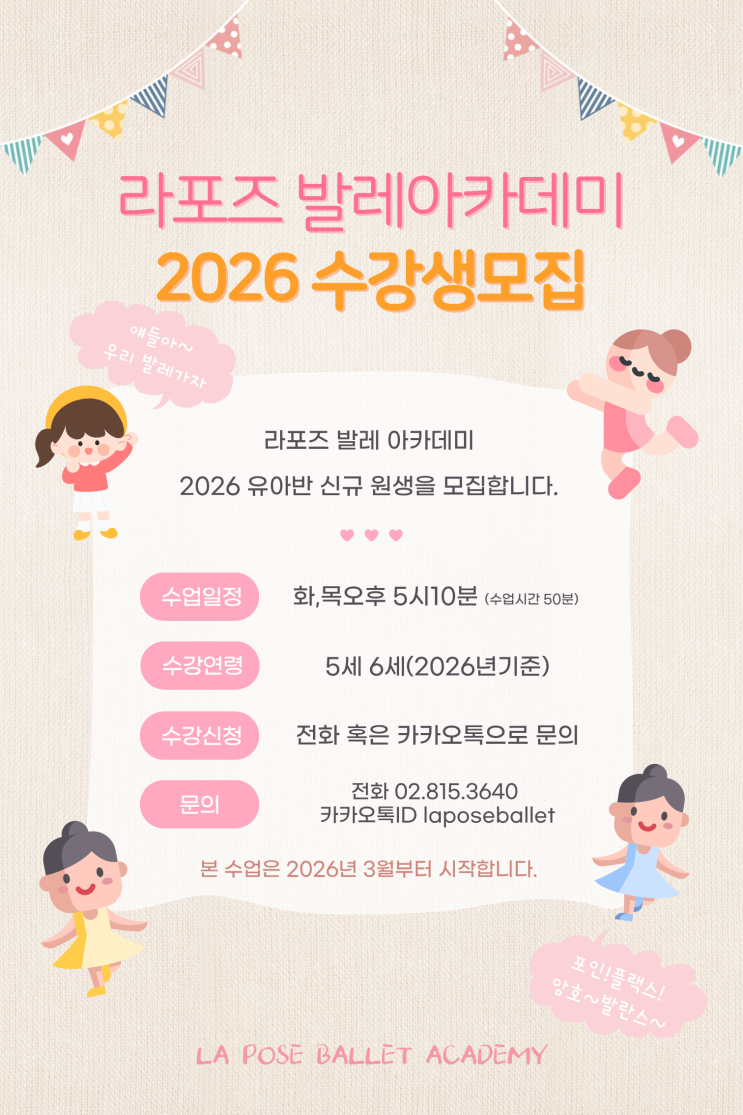 [동작구발레 상도동발레] 라포즈발레아카데미 2026 유아반 5-6세신규수강생 모집안내