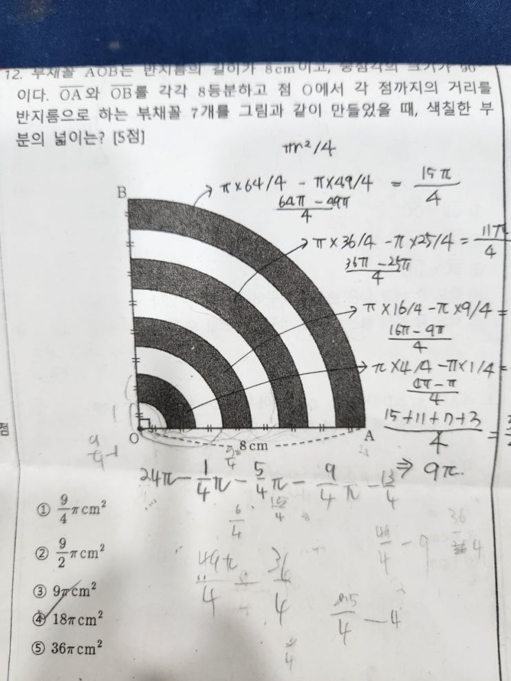 기말고사 시험이 막바지에 이르렀다 한 학년을 마무리하는 2학기말 시험결과를 보고 지난한해의 반성과 앞으로 계획을 해야한다 수학개념과 문제유형 그리고 사고력을 볼때 반성할 문제가 있다 이번중1의 12번 수학문제를 통해 문제사고력에 좀더 집중할 필요가 있다 알아야 하는 개념과 공식은 원의넓이: 반지를 ×반지름×원주율이다 이 공식을 모른 학생은 거의 없으나 이 문제를 맞춘학생은 그리 많지 않을것이다. 왜냐하면 어렵게 보고 복잡하게 계산하다 다른문제의 시간도 빼앗아버리는 문제이기때문이다 심지어 12번 이라 뒤의 남은 문제들을 걱정하게 만드는 문제배치때문에 자칫하면 전체를 망칠수있는 킬러일수 있다 이 문제를 푸는 방....... <img src="https://blogthumb.pstatic.net/MjAyNTEyMThfMjk0/MDAxNzY2MDU2OTEyNDMw.-XDX6U5uLT8HVUn_YaacHZGKR9HkDRk9JawyIwQRLw4g.1N4krcbvrw12lh2TgF7eANNvh5EutbipyF0tYUmJC7wg.JPEG/900%A3%DF20251217%A3%DF190113.jpg?type=s3" />