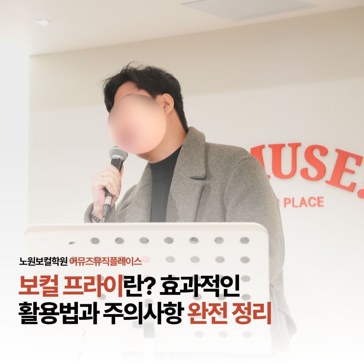 안녕하세요! 노원보컬학원 어뮤즈뮤직플레이스입니다! 보컬 레슨에서 자주 언급되는 보컬 프라이, 제대로 알고 쓰자! 보컬 레슨 시 "보컬 프라이로 워밍업하세요" "튀겨주는 듯한 소리를 내보세요"라는 말, 한 번쯤 들어보셨죠? 그런데 보컬 프라이가 정확히 뭔지, 목에 안 좋은 건지 좋은 건지 헷갈리는 분들이 많아요. 오늘은 보컬 프라이를 처음 접하는 분도 이해할 수 있게 쉽고 정확하게 정리해드릴게요! 1. 보컬 프라이가 뭔가요? 보컬 프라이(Vocal Fry)는 사람의 목소리 중 가장 낮은 음역대에서 나오는 발성 방식이에요. 영어로는 'creaky voice(삐걱거리는 목소리)'라고도 하고, 학술적으로는 펄스 레지....... <img src="https://blogthumb.pstatic.net/MjAyNjA0MDJfNDMg/MDAxNzc1MDk1NzM2MjQz.lsQbeq7N3Xx3jYmO2Vohj7baAvUzSquyppxkz8LVAxkg.SZprvaE8l7tjxovZjKdybj4koVZx6745aPclyfpfqj8g.JPEG/%C1%A6%B8%F1%C0%BB_%C0%D4%B7%C2%C7%D8%C1%D6%BC%BC%BF%E4._%2884%29.jpg?type=s3" />