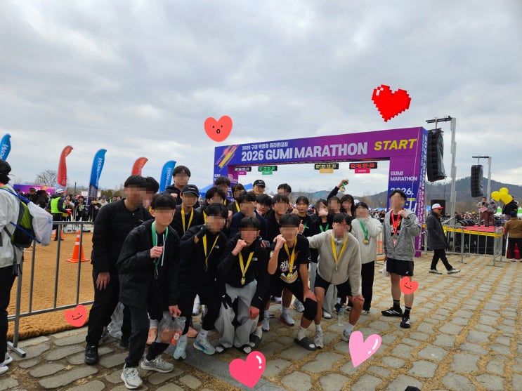 꿈을 향해 달려보아요! 지난 3월 1일 낙동강 체육공원에서 '구미 박정희 마라톤대회'가 개최되었고, 24명의 우리 학원 마라토너(?)들이 부원장님과 함께 대거 출전하였습니다! 이번 대회는 참가자와 대회 관계자, 시민 등 국내외 3만여 명이 참여하였으며, 풀코스를 포함해 하프, 10km, 5km 등 4개 종목으로 진행되었습니다. 우리 정원 학원의 고등부 학생들도 자신이 원하는 10km, 5km 종목에 나누어 참가하였고, 부원장님은 하프에 도전하셔서 자신의 신기록을 달성하셨습니다~ 구간 구간 시민들의 응원과 격려 속에서 끝까지 완주를 해준 우리 학생들, 정말 수고 많았고 자랑스럽습니다!! 자신의 한계에 대한 도전을 통해 더 높은 단....... <img src="https://blogthumb.pstatic.net/MjAyNjAzMjlfMjM5/MDAxNzc0NzgyMzI1NzQ3.90vOxvv4IIMf1k7CDER3NjC0ph9pmeUmdRM7ecFHfHEg.OWaIh0XmjDeXQGYIybW8Q4OglnKQrlec4BQwFEUogZgg.JPEG/KakaoTalk_20260329_191350433.jpg?type=s3" />