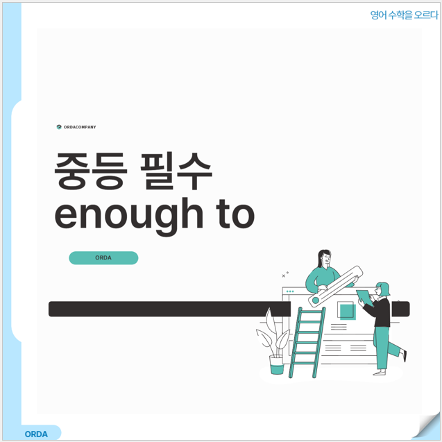 안녕하세요 오르다입니다. 이번 시간에는 중등 필수 enough to에 대해 알아보겠습니다. 기본 의미 = “충분히 ~해서 ...할 수 있다” = “~할 만큼 충분하다” She is old enough to drive. → 그녀는 운전할 만큼 충분히 나이가 있다(= 운전할 수 있다). 포인트 가능/충족의 의미가 핵심입니다. too~to(불가능)와 반대 의미로 자주 출제됩니다. 문법 구조 1. 형용사 + enough be + adj + enough + to V The box is light enough to carry. → 그 상자는 들고 갈 만큼 충분히 가볍다. 형용사 뒤에 enough가 옵니다. (enough light X) 2. 부사 + enough 동사 + adv + enough + to V He speaks clearly enough to be understood. →....... <img src="https://blogthumb.pstatic.net/MjAyNjAyMDZfOTYg/MDAxNzcwMzg0MTk2ODkz.VepVmNQTb6TGCJC6lcF2tfw3KFOhioQatiEEUKjFWQAg.k6qecdlbOX6PDXMfvYUTmZEfJ4mHl9ZQkNgf_WG51Oog.PNG/%C7%A5%C1%F6.png?type=s3" />