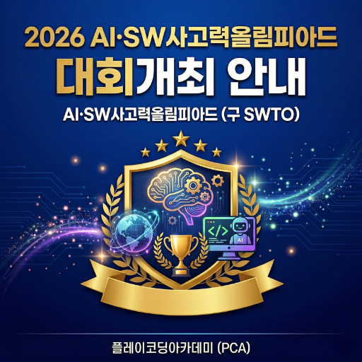 역대 최대 규모 AI·SW 사고력 올림피아드 2026 새로운 특징 분석 및 대비 안내 2026년 6월 20일 개최 확정! 대상 2번 포함 역대 56명의 수상자를 배출해낸 SW 사고력 올림피아드 대비 전문가 플레이코딩아카데미에서 SW사고력올림피아드 대비 안내드립니다. 다가오는 6월, 완전히 새로워진 제12회 대회의 핵심 정보와 1000:1의 경쟁률을 뚫어내는 대치동 상위 1%의 대비 전략을 상세히 분석해 드립니다. 2026 제12회 AI·SW사고력올림피아드 개최 안내 올해 대회는 기존의 소프트웨어 사고력에 '인공지능(AI)'에 대한 이해도와 활용 능력을 더하여 한층 심도 있게 치러집니다. 대회일시 : 2026년 6월 20일(토) 응시대상 : 초등학교....... <img src="https://blogthumb.pstatic.net/MjAyNjA0MDJfMjA2/MDAxNzc1MTM0MzM3MzAw.qi_Q_ypuW65xDtyTHGA_SeUdwoaWYCky2-FUYl-2M7Ig.zNVPdsQSn82Rn13KGtTwE8CTtHZuOjitXTZUNN_lex0g.PNG/AISW%BB%E7%B0%ED%B7%C2%BF%C3%B8%B2%C7%C7%BE%C6%B5%E5.png?type=s3" />