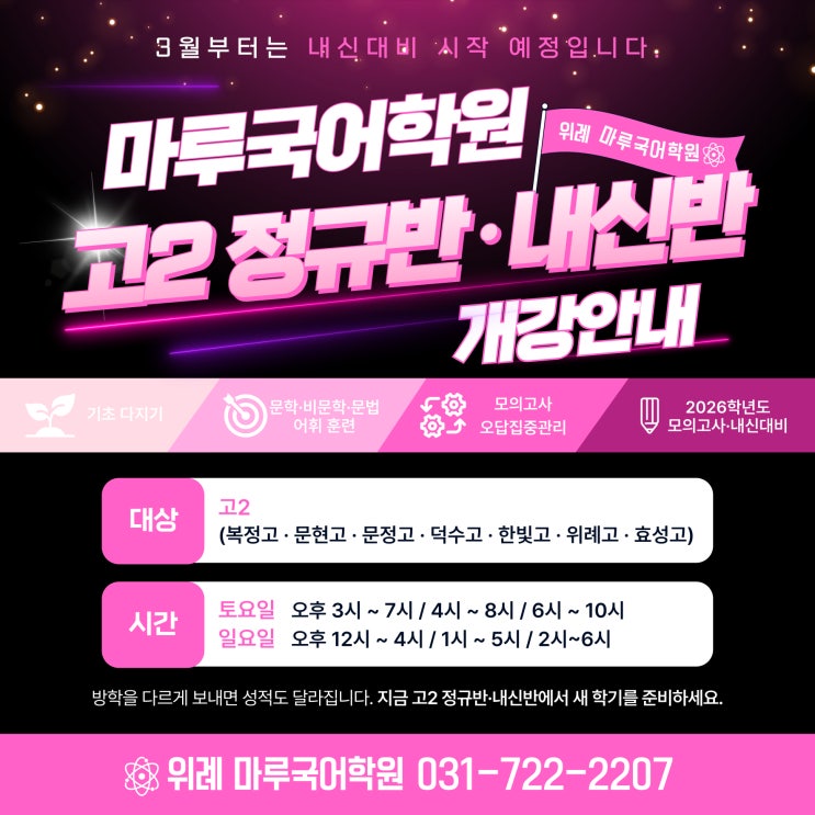 [위례 마루국어학원] 예비고1·고2·고3 내신반/정규반 개강 안내