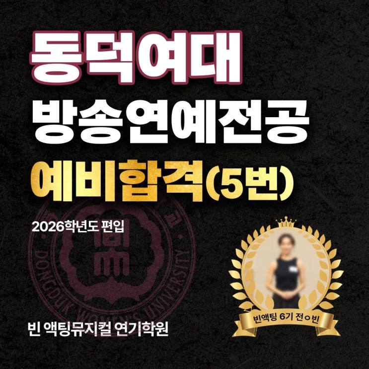 [빈 액팅뮤지컬 연기학원] 2026학년도 편입 동덕여대 방송연예전공 예비합격