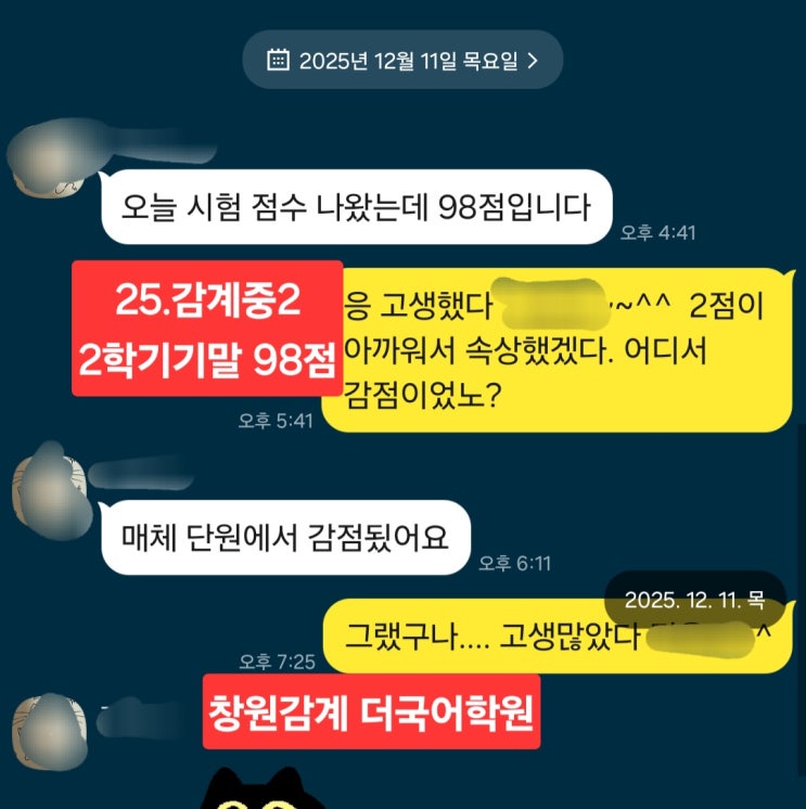 [창원북면감계 더국어학원 북면초 감계초 감계중 북면고]25.감계중2 2학기기말 98점