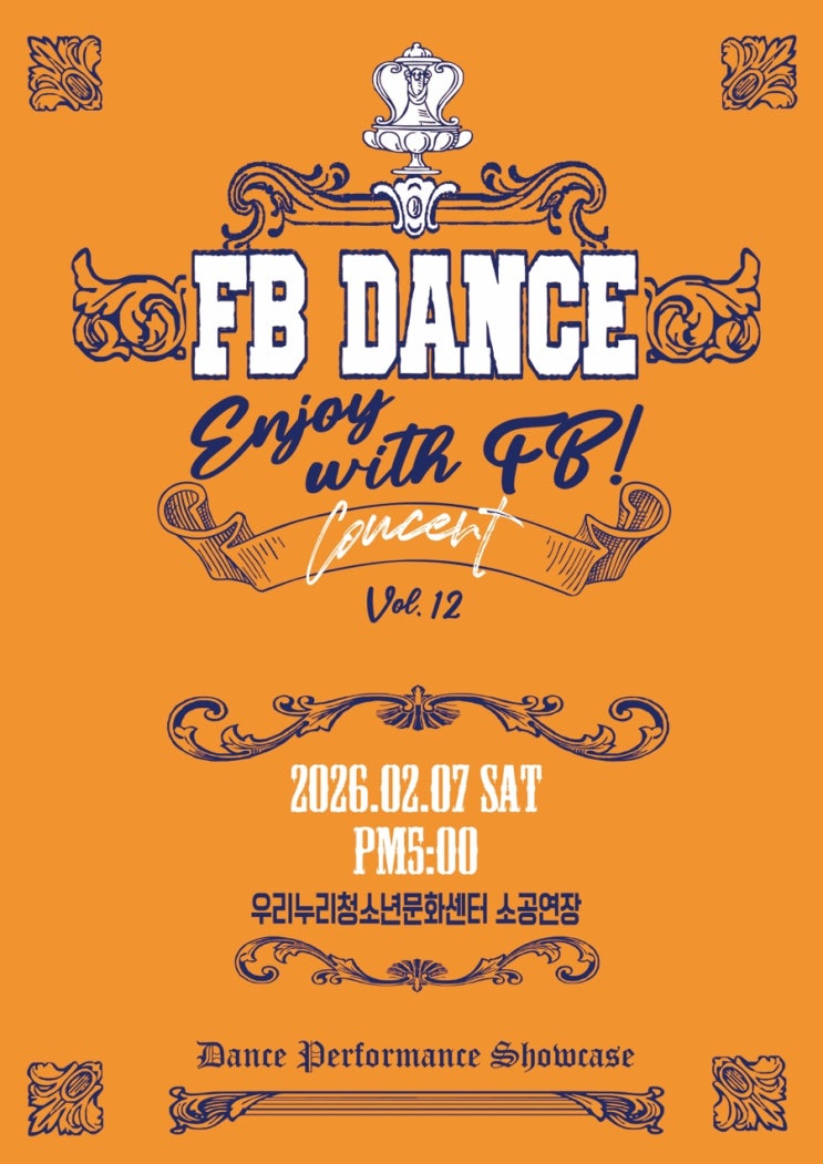 26년 새해가 밝았습니다! 그리고 올해도 12번째 콘서트를 진행합니다! 이번 콘서트 장소는 마산 우리누리청소년문화센터 소공연장 에서 열린답니다! 제대로 된 초대와 관람을 위해 소공연장에서 열리는 FB댄스아카데미 열두번째 콘서트 이번 콘서트 내용은 각 장르의 역사들과 느낌들을 이해하는 영상 시간과 장르 공연들로 스트릿댄스, 그리고 댄스문화를 이해할 수 있는 콘서트를 진행할 예정이랍니다! 누구든 오실 수 잇으니 와서 즐겨주세요! 대신! 티켓이 있어야 예매가 가능 힙니다. 티켓 예매는 055)284.1630 혹은 오픈카카오톡 으로 예매해주세요! <img src="https://blogthumb.pstatic.net/MjAyNjAyMDJfMTUy/MDAxNzcwMDEwNDA0NDYy.Z1Qi5vAvSOkEawXdKw-MPOVMQi-BJxmj3EWGIen1X0Ag.nGh8NQ0YBWiHSUFKpqlXYm8to7B3VEEnn3q1B1mp9Ygg.JPEG/IMG%A3%DF6031.JPG?type=s3" />