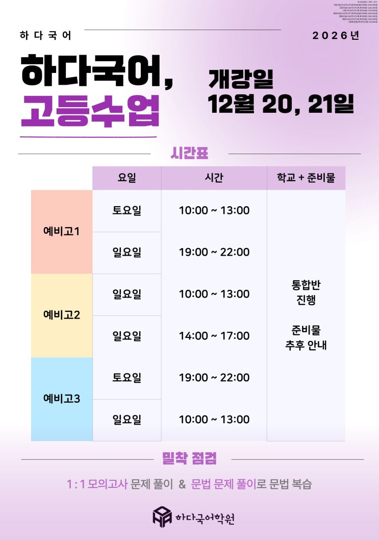 [고등부 수능] 하다국어학원 2026 수능 국어 시간표 안내