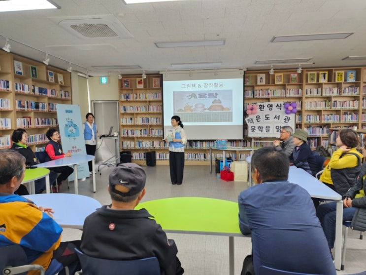 2026 작은 도서관 책친구 지원 (사) 어린이와 작은 도서관 협회. 문체부가 주최하고 (사) 어린이와 작은도서관협회가 주관하는 공모사업에 봉곡평생 학습센터를 통하여 책 친구 활동을 하게 되었다. 4월부터 11월까지 시니어와 장애인을 대상으로 그림책& 창작놀이활동으로 진행될 예정이다~ ♡♡환영식♡♡ ♤ 작은도서관 ♤ ♧ 문학을 읽다 ♧ 4월1일 기다리던 첫수업..... 준비를 많이 하였건만 혹시나 시니어분들이 힘들어 할까봐 노심초사 ㆍ ㆍ ㆍ 책~개욕탕 / 김유/ 천개의바람 컷팅식으로 첫 수업시작하다~ 색종이를 잘라 고리를 길~~~게 만들고 흰장갑을 끼고 커팅식을 성대히 진행하였다~ㅋ 사람들이 곤히 잠든밤. 잠못드는 개들이....... <img src="https://blogthumb.pstatic.net/MjAyNjA0MDNfMjE1/MDAxNzc1MjAxOTA2ODA1.GPzPP_gGSY1HIfR9CYaap5nXRvK1vVyz6pShFZ4GXosg.AdjX7O0sDgP6rd3A3jNJ33YUxj7eQJuW_bagV-Wcuxcg.JPEG/900%A3%DF1775195356551.jpg?type=s3" />