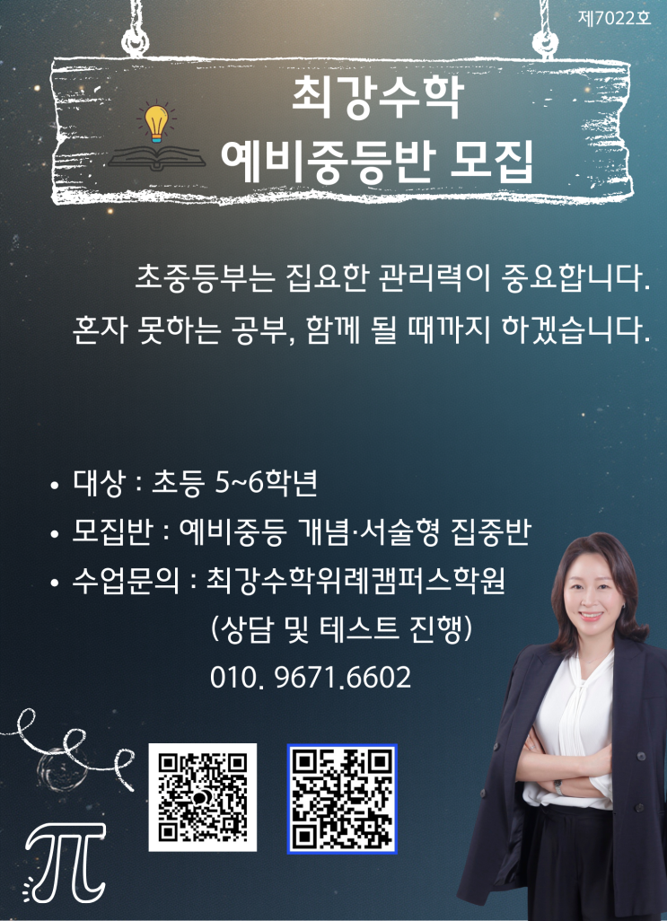 【위례최강수학학원】 예비초5,6학년 중등과정 모집 안내