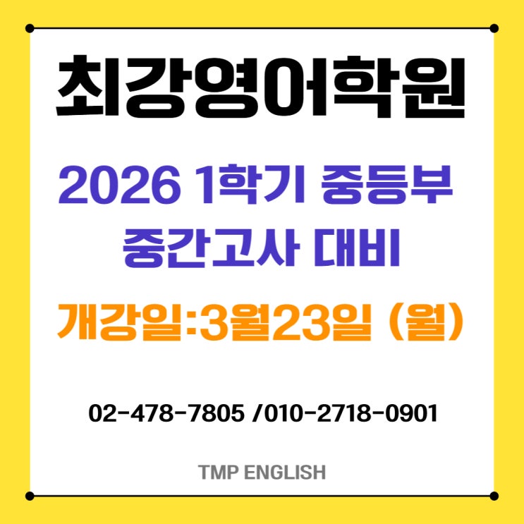 [최강영어] 중등부 1학기 중간고사 내신 대비 3월23일 대개강! / 강동구영어학원 둔촌동영어학원 성내동영어학원 포레온영어학원