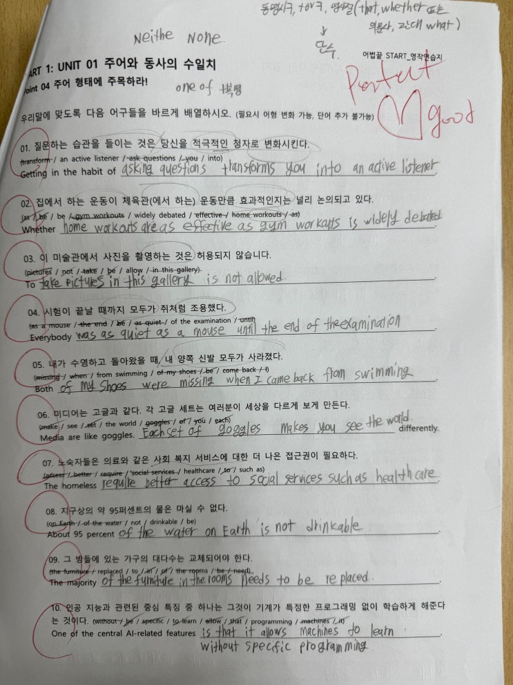 저는 중등부 영어교육을 시작할 때 한 가지 분명한 전제를 가지고 있습니다. 집에서 스스로 계획적으로 공부하는 학생은 거의 없다는 점입니다. 그래서 수업 시간만을 관리하지 않습니다. 학생의 취침 시간은 어떤지, 하루의 생활 리듬은 어떤지 묻고, 세상 전반에 대한 이야기와 함께 자연스럽게 동기를 만들어 갑니다. 공부는 단순한 기술이 아니라 학생의 정신 상태와 밀접하게 연결된 활동이라고 생각합니다. 아직은 어른인 제가 학생들과 먼저 연결되어야 하고, 학생들은 저를 통해 세상을 배우는 과정에 있다고 믿습니다. 영어는 그 세상으로 나아가기 위한 가장 중요한 연결 통로(브릿지)가 되어야 합니다. 1. 무조건적인 공부 시간 확보.......