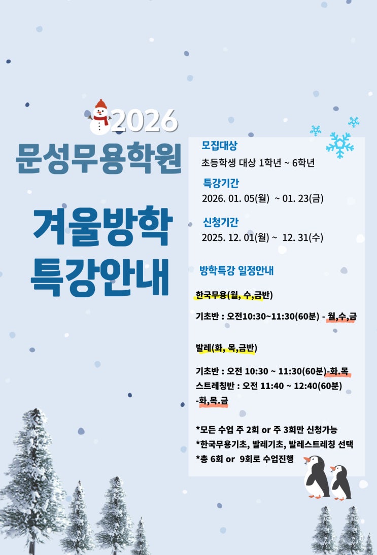 [ 2026년 문성무용학원 겨울방학 특강안내 ]