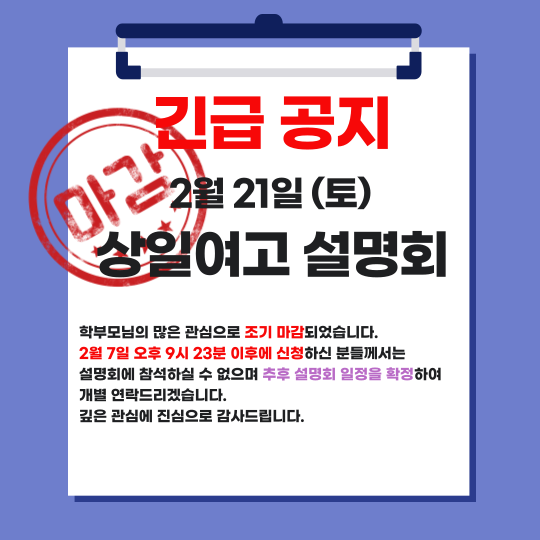 [긴급공지] 고1 설명회 신청 마감 안내(광문/상일)