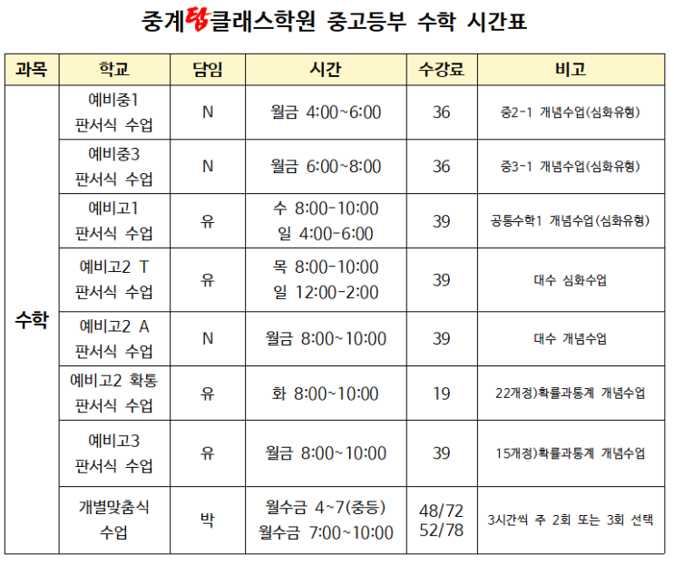 [중계동 국어, 영어, 수학, 과학 단과학원] 학교별 내신대비가 최대 정원 5명으로 진행되는 극 소수 정예 수업.