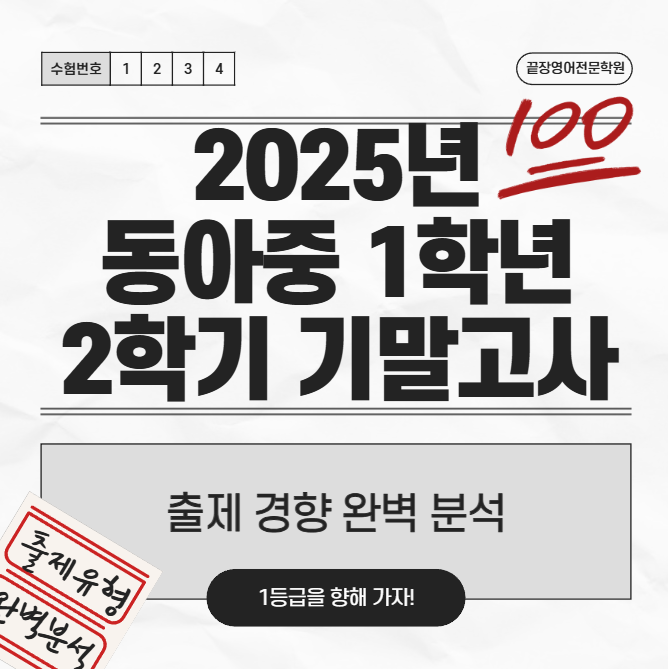 [수영구 광안동 영어학원] 25년 동아중 1학년 2학기 기말고사 영어 내신 출제 경향 분석