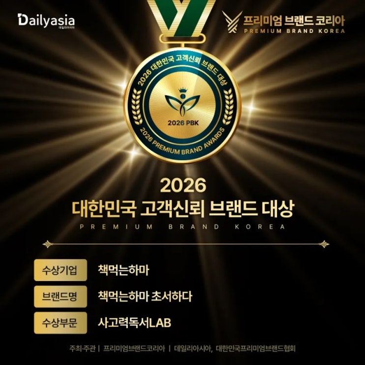 2026년 대한민국 고객 신뢰브랜드 대상 책먹는하마 초서하다