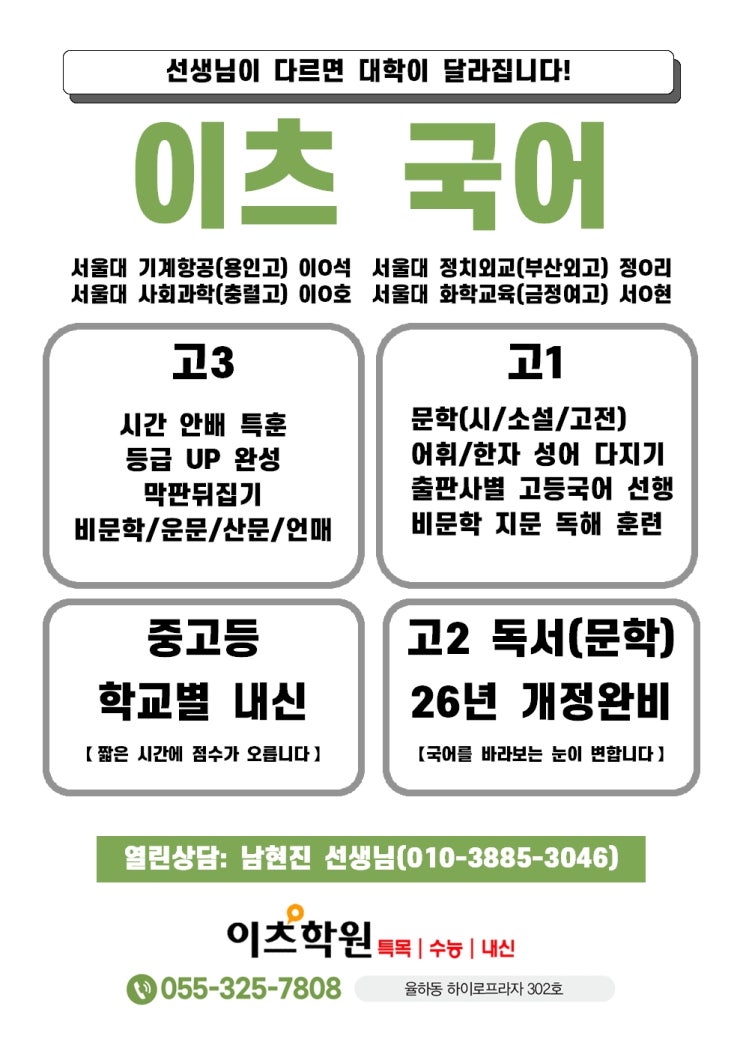 고등부] 1등급 율하고2 - 박ㅇ연,김ㅇ준(전교2등), 이ㅇ현, 박ㅇ태, 최ㅇ준,김ㅇ안 율하고1 - 강ㅇ서, 김ㅇ현, 김ㅇ윤 김해외고1- 김ㅇ민 김해외고2- 박ㅇ재,조ㅇ재,,김ㅇ현 경남외고2-우 ㅇ서 수남고1 - 김ㅇ영(전교1등), 김ㅇ민,최 ㅇ기 수남고2 - 임ㅇ윤(전교1등),이ㅇ서.김ㅇ서,김ㅇ훈 대청고1 -김ㅇ서.정ㅇ욱 대청고2 - 노ㅇ원(전교1등) 진해고1- 류ㅇ민 부일외고1-이ㅇ연.김ㅇ훈 부일외고2 - 김 ㅇ영 [중등부] 1등급 (90점이상) 율하중3- 송ㅇ영(전교1등 졸),오 ㅇ은100점, 이 ㅇ우 김ㅇ은, 박ㅇ준, 김ㅇ주,박ㅇ현,한ㅇ현,김 ㅇ빈 율하중2-박ㅇ원.김ㅇ원.이ㅇ윤.박ㅇ후 이ㅇ진.김ㅇ정, 김ㅇ루,이 ㅇ인 율하중1-황 ㅇ민(1등),김ㅇ민.김 ㅇ혜.......