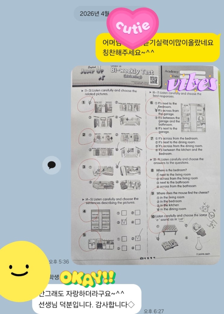 안녕하세요 이번 주도 각 학년별로 다른 흐름 속에서, 전체적으로는 안정적이고 적극적인 학습 분위기가 이어졌습니다. 전체 흐름 한눈에 보기 ✔ 전반적으로 학습 태도는 긍정적 ✔ 진도는 정상적으로 진행 중 ✔ 다만 “기초 정확도”에서 반복 오류 발생 이번 주의 핵심 키워드: 정확도 & 반복 고1 – “기초는 알지만, 완벽하지는 않다” 현재 경남외고 1학년 진도는 **4과 (동사술어문)**까지 진행되었습니다. - “먹다 / 사다”를 중심으로 - 음식, 음료 관련 어휘 확장 - 기본 문장 구조 학습 필요하신 분은 단어 정리 자료 요청 가능 (댓글 / 메시지로 문의 주세요 ) 하지만 중요한 포인트 병....... <img src="https://blogthumb.pstatic.net/MjAyNjAzMzBfMjc3/MDAxNzc0ODU2OTkxODg0.wHp8eKYXeeveIvV4Sncv52SdK_ysmNipkIzeFeh6gLUg.xpMBulW75CevFSLFJuBQDWFdp01NgkzolbfkhjFn1ykg.JPEG/IMG_1296.jpg?type=s3" />