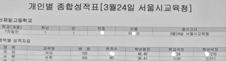 양산제일고 전문 FTA이레학원 2026년 3월 24일 전국연합수능모의고사 1등급 석권!!