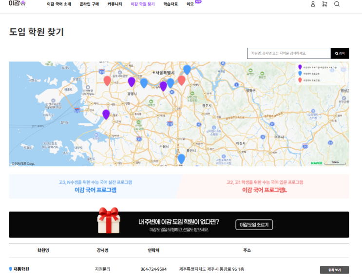 이감 홈페이지 ‘도입학원 목록’에서 재동학원을 직접 확인해보세요
