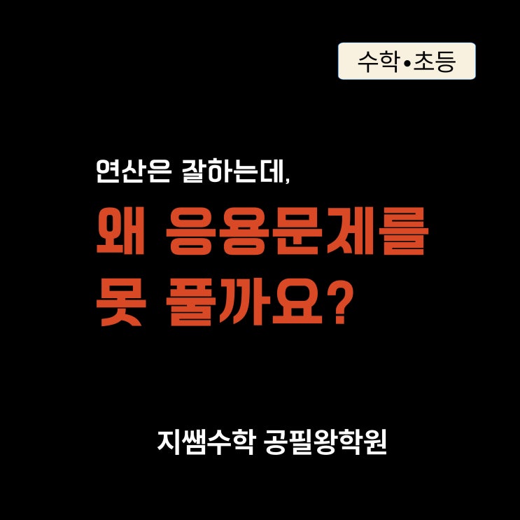 안녕하세요 :) 연동학원 지쌤수학공필왕학원입니다. "우리 아이 연산은 잘하는데, 왜 응용문제를 못 풀까요?" 학부모님들과 상담을 하다 보면 자주 듣는 질문 중 하나입니다. 오늘 상담 오신 학부모님께서도 같은 고민을 말씀하셨습니다. 사실 이 경우는 아이의 노력이 부족해서도, 머리가 나빠서도 아닙니다. '수학을 연산 위주'로 만 공부해왔기 때문입니다. 연산을 잘하는 것과 수학을 잘한다는 것은 다릅니다. 초등연산은 계산 기술입니다. 하지만 수학은 개념을 이해하고 문제를 해석하고 적용하는 사고 과목입니다. 실제로 수업을 하다 보면 연산은 빠른데도 이런 특징을 보이는 아이들이 많습니다. 계산은 빠른데 정....... <img src="https://blogthumb.pstatic.net/MjAyNTEyMDlfMjUz/MDAxNzY1Mjc4ODU3NTky.X-A3on09TknohK5Um_anR3HJXGsH62MvuhZdzMmQvmMg.Hj9MNF59DAFsxo0CpwoKvGSKDE2VKyj1lF4pZtj8ZeUg.JPEG/%C1%A6%B8%F1%C0%BB-%C0%D4%B7%C2%C7%D8%C1%D6%BC%BC%BF%E4_-001_%2821%29.jpg?type=s3" />