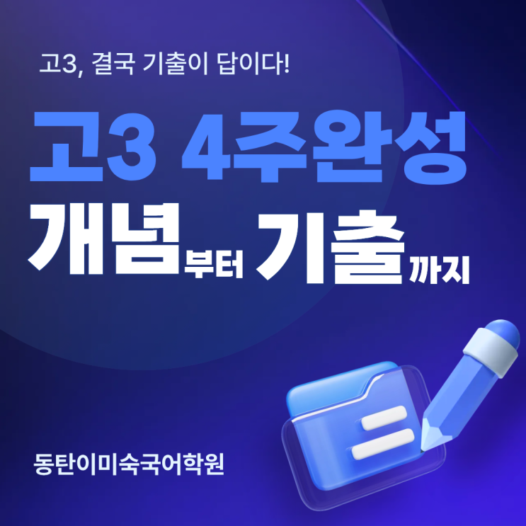 고3이 되면 국어 공부의 방향은 분명해져야 합니다. 막연히 문제를 많이 푸는 공부가 아니라, 수능이 요구하는 기준을 정확히 익히는 공부가 필요합니다. 수능 국어는 매년 새로운 지문이 출제되지만, 문제를 만드는 원리와 출제 방식은 기출에서 반복됩니다. 따라서 고3 국어에서 가장 중요한 학습은 기출을 통해 출제 의도를 이해하고, 문제를 해결하는 기준을 세우는 것입니다. 이번에 준비한 고3_4주 완성반은 3개년 기출을 중심으로 문학은 개념어와 핵심 작품을 독서는 유형 분석을 중심으로 구성되어 수능 국어의 틀을 다시 정리하여 4주 집중 완성으로 설계되었습니다. 또한 고3 3월 모의고사대비를 위한 주1회 클리닉을 통해 배운 내용....... <img src="https://blogthumb.pstatic.net/MjAyNjAyMjBfMTM4/MDAxNzcxNTY5ODU2MjA1.5tW8LWJFyPNkNuxH9onmiodPlwBsicgXJjA4pVWnDL8g.lgiv1DZaowrKMNx-mM4yNDbZyhXQDG-5HFtm1vr2Ptkg.PNG/%C1%A6%B8%F1%C0%BB_%C0%D4%B7%C2%C7%D8%C1%D6%BC%BC%BF%E4..png?type=s3" />