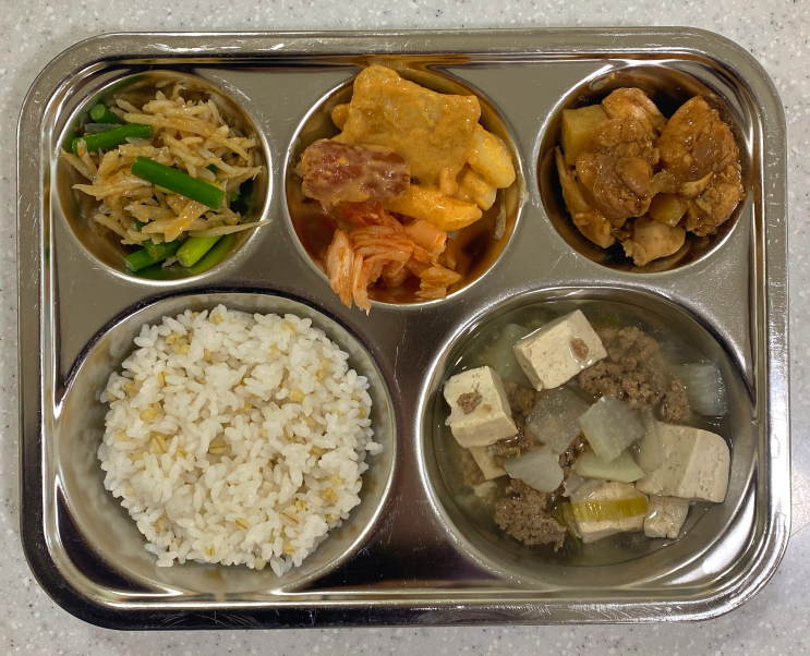 데리야끼닭조림 로제떡볶이 마늘쫑진미채조림 김치 소고기무국 보리밥 739kcal/36g <img src="https://blogthumb.pstatic.net/MjAyNjAyMjNfOTYg/MDAxNzcxODIwMDg1NTQz.9FPuIpZJG5zNKv26WLnMotkFxesrD_HX5TQJj10JSCAg.4dkLiSbluDwxZZ1MLHeTtHpcOrzf1G8Vm4zQvYRRJ3Yg.PNG/image.png?type=s3" />