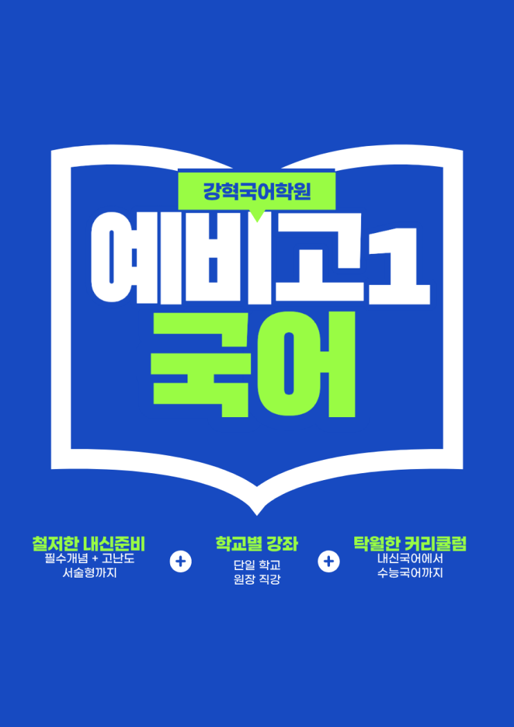 #예비고1 #사직동 #국어학원 국어는 강혁! 안녕하세요. 강혁국어입니다. 예비고1 국어 개강 안내입니다. [대상] 동래고 동인고 사직고 사직여고 이사벨고 내성고 [개강일] 2026. 1. 3 자세한 문의는 989-3927로 부탁드립니다. 감사합니다. 국어가 차이를 만듭니다. 신고번호 제 5565호 <img src="https://blogthumb.pstatic.net/MjAyNTEyMTNfMjA2/MDAxNzY1NjA5Njg0MDc3.sNxInkPxy358h8Al19vV6hwJ24wb_yRg0tKrHGe-lL4g.oSGDz-9E0lY2cHwHu5fkzplP6jiSyWaKa4RMBl2Q8h8g.PNG/20251213_%BF%B9%BA%F1%B0%ED1.png?type=s3" />