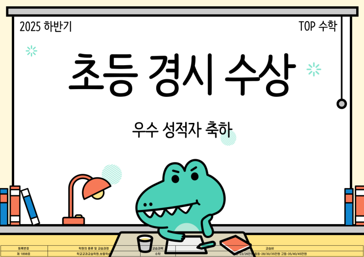 안녕하세요? 꿈터쌤입니다. 보통의 우리 아이를 특별하게 만드는 곳 아이들의 실력이 향상되는 것을 확인할 수 있는 곳 만덕이룸수학은 매년 학기마다 수학경시대회를 준비하였고 아이들의 성과도 우수하였어요. 수학경시대회를 매번 준비하면서 아이들의 학습부담과 경시대회에서 잘해야 한다는 스트레스가 크더라구요. 그래서 2학기에는 새로운 방식으로 수학경시대회를 개최하기로 하였지요. 매달 한 달에 한 번 KMM 수학경시대회로 단원평가치듯이 부담없이 시험을 보는 것이었어요. 결과는 대성공이네요. 학부모님은 아이들의 성장을 객관적으로 볼수 있다며 만족하시네요. 아이들이 매달 상장을 받는 것도 굉장히 뿌듯하더라구요. 한 달에.......