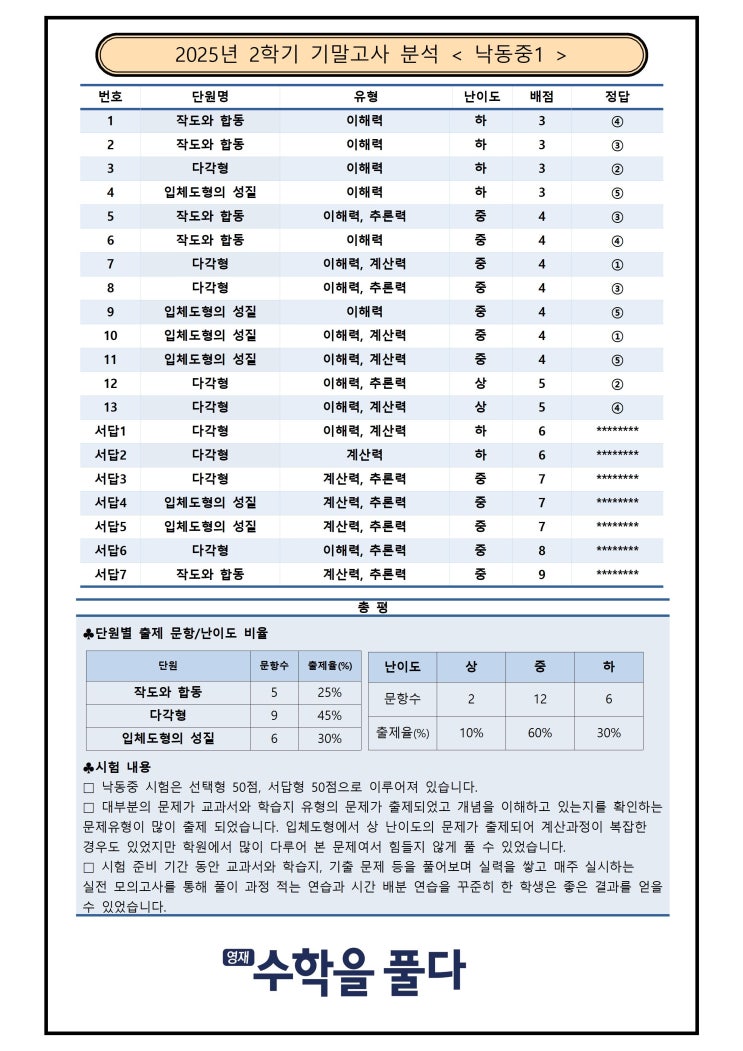 2025년 2학기 기말고사 분석 < 낙동중1 >