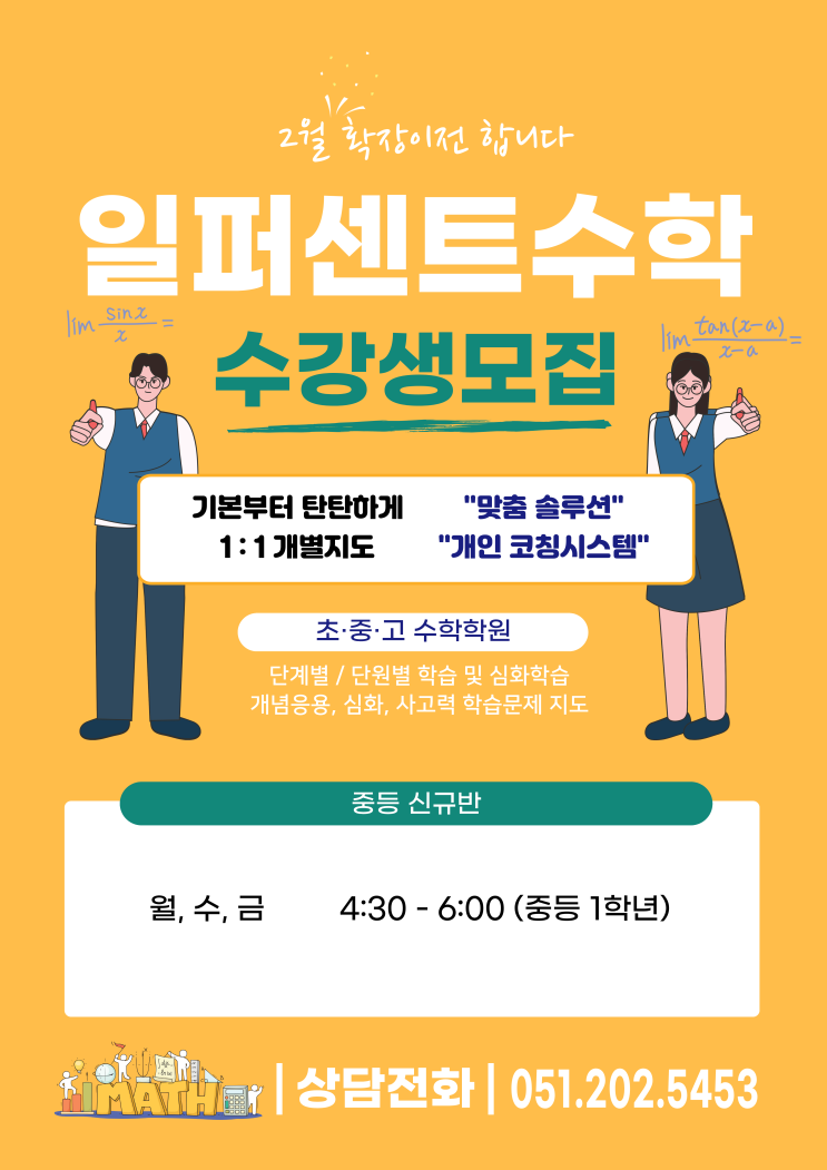 [당리수학] 일퍼센트수학 3월 중등 신규 모집!!