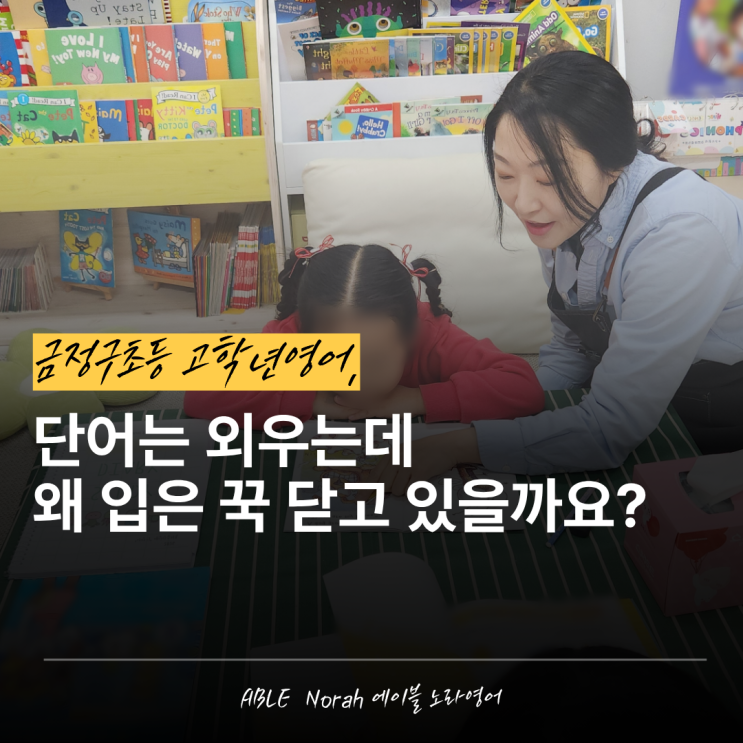 안녕하세요. 금정구초등영어 ABLE Norah 에이블노라 영어입니다. 초등 고학년 영어, 지금 방식 그대로 중학교까지 버틸 수 있을까요? 장전동영어 학원가를 고민하시는 부모님들과 상담하다 보면 공통적인 걱정이 있으시더라고요. "단어는 열심히 외우는데 입은 꾹 닫혀 있고, 문제집 권수는 늘어나는데 실력은 제자리인 것 같다"는 말씀이죠. 초등 고학년은 이미 많은 공부량에 지쳐 있는 시기예요. 단순히 양을 늘리는 방식은 중학교에 가기도 전에 우리 아이를 힘들게 할 뿐입니다. 이제는 영어를 양으로 승부하기보다, 배운 것을 스스로 밖으로 끄집어내는 '능동적 출력 구조'로 방향을 틀어주어야 해요. 금정구초등영어....... <img src="https://blogthumb.pstatic.net/MjAyNjA0MDZfMjEw/MDAxNzc1NDYxNzIxNjc4.RpleNzzUt0T04MPWHejBqHIEicisQIGTCkyeBEQFlCkg.eCgmqXSE6Ggt43a6oEqsIUMgwWaDbL-stqpPiZUsx6Mg.PNG/1.png?type=s3" />