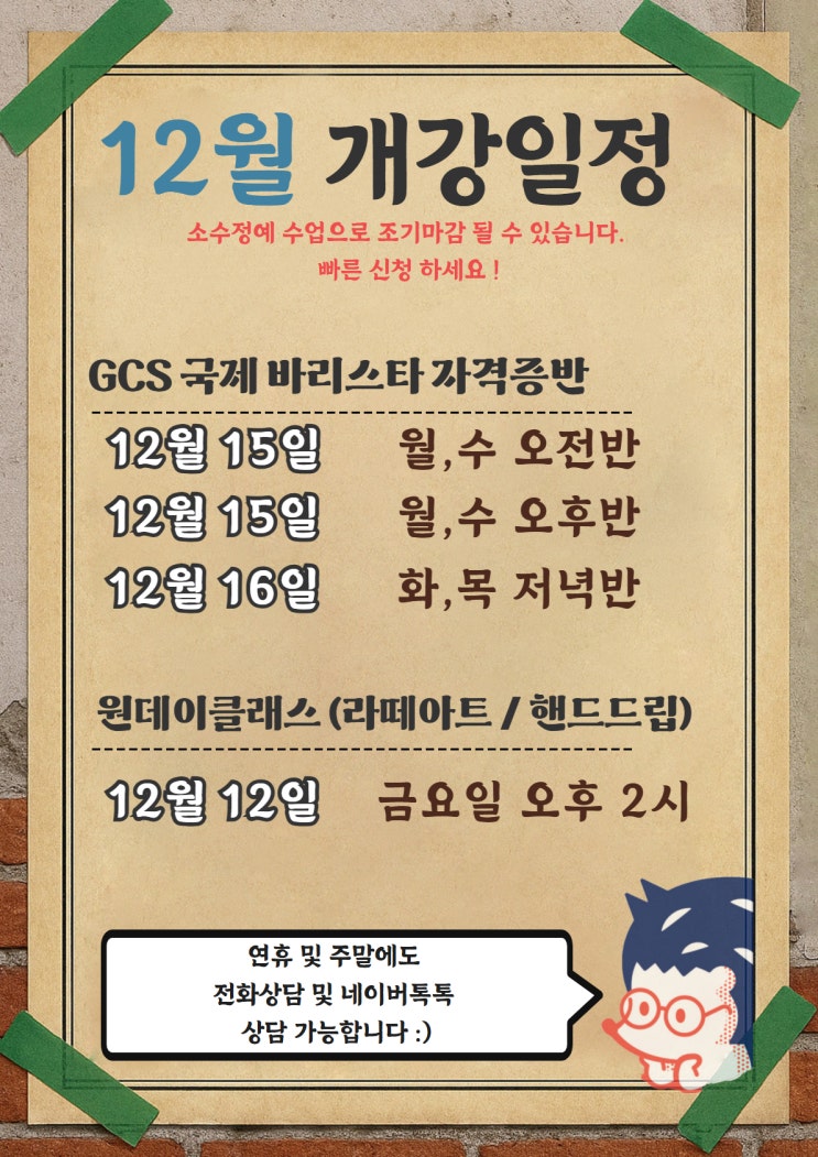 12월 개강일정입니다 : ) - 부산 로지컬커피 바리스타학원