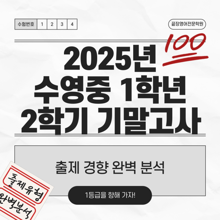 [수영구 광안동 영어학원] 25년 수영중 1학년 2학기 기말고사 영어 내신 출제 경향 분석