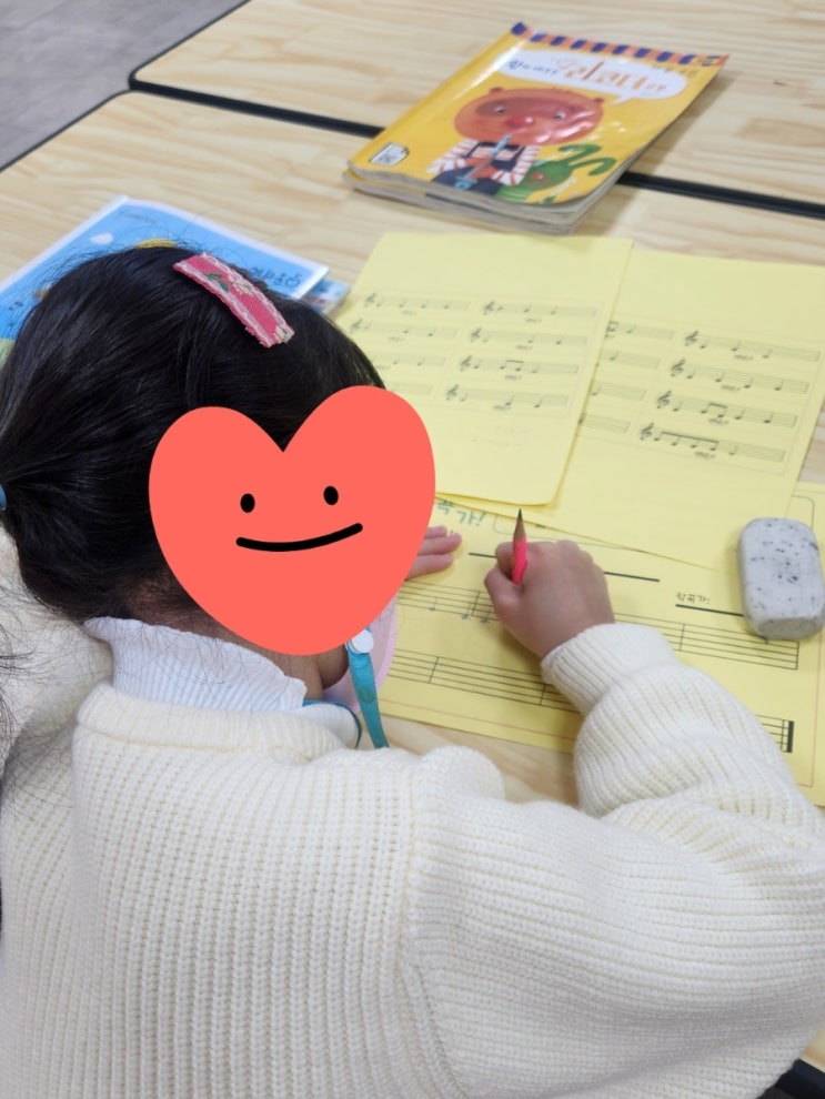 오늘 수업 시간에는 아이와 함께 ‘나도 작곡가!’ 활동을 해보았어요 음표를 따라 적어보고, 리듬을 느끼면서 직접 멜로디를 만들어 보는 시간이었습니다. 아이 스스로 가사를 쓰고, 마지막 음은 ‘도’로 끝내야 한다는 약속도 잘 지켜주었답니다 작은 손으로 연필을 꼭 쥐고 악보 하나하나를 완성해 가는 모습이 정말 대견하고 사랑스러웠어요 이런 활동은 ✔️ 음악을 어렵지 않게 느끼게 해주고 ✔️ 표현력과 창의력을 키워주며 ✔️ 피아노 연주에도 큰 도움이 됩니다 앞으로도 아이들이 즐겁게 음악을 만들고 표현할 수 있는 수업을 계속 이어가겠습니다 <img src="https://blogthumb.pstatic.net/MjAyNjAyMDVfMTQy/MDAxNzcwMjgwODgwMDc2.eih7fcYdkooxKhMedBHJ-khSTERyRhmLXXQd3IYk46sg.ilI7MgJrW4ObYBTsQv3OYrtkxrYG_DiMdzqaoqL1xP4g.JPEG/900%A3%DF1770280736533.jpg?type=s3" />