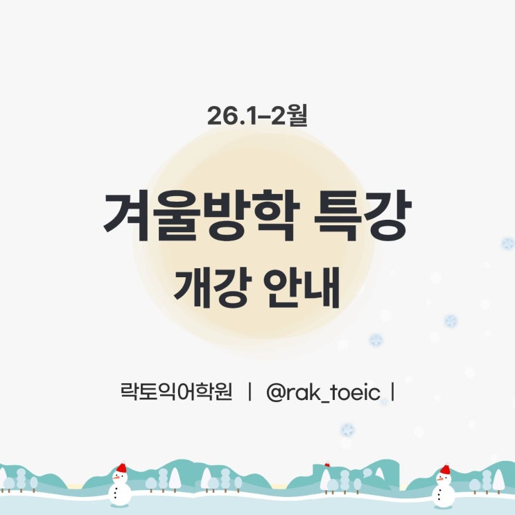 락토익어학원 26.1-2월 겨울방학특강 개강 안내