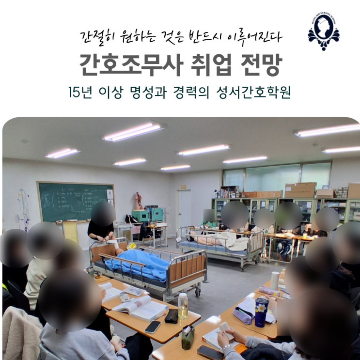 안녕하세요. 성서간호학원 원장 김정애입니다. 간호조무사 자격증을 고민하는 분들이 요즘들어 많이 묻는 질문이 있습니다. “앞으로도 취업이 잘 될까요?” 결론부터 말씀드리면 간호조무사 수요는 줄어들기 보다는 ‘방향이 바뀌는 중’에 가깝습니다. 특히 대구 지역은 병·의원, 요양병원, 요양시설이 고르게 분포되어 있어 2026년을 기준으로도 취업 기회는 여전히 안정적 인 편입니다. 다만, 아무 준비 없이 자격증만 취득하는 것과 현장 흐름을 이해하고 준비하는 것은 결과가 다를 수 있습니다. 그래서 오늘은 대구 간호조무사 취업 전망과 26년 트렌드, 그리고 예비 간호조무사가 지금부터 준비하면 좋은 포인트를 정리해드리겠습니다. 2....... <img src="https://blogthumb.pstatic.net/MjAyNTEyMjVfMjI1/MDAxNzY2NjU3MTI1NTgz.vlkavWmKbg-u701rlT6McmaQwP6MNRpTjPOeLcTUo1Qg._o0w1VULMUv5mOTpfu0ZkJgRwa-R4EmsJDWFmAgEoJAg.PNG/%C1%A6%B8%F1%C0%BB-%C0%D4%B7%C2%C7%D8%C1%D6%BC%BC%BF%E4_-001_%285%29.png?type=s3" />