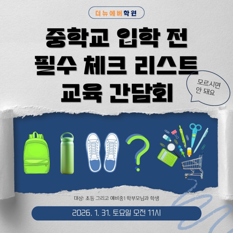 인천 삼산동, 갈산동, 부평동 초등~예비중1 학부모님들을 위한 "중학교 입학전 필수 체크 리스트 교육간담회" #더뉴에버 영어학원