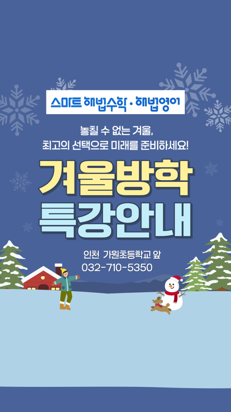 인천 서구 가정동 루원시티 스마트 해법수학 영어 겨울방학 특강!